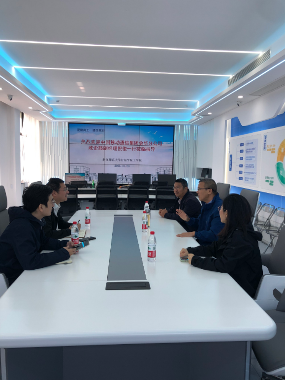 2025年10月23日,中国移动金华分公司政企部副经理倪俊一行赴工学院交流。院长倪应华、党总支书记张华平、院务助理华召岳等参与陪同,共探校企合作深化路径。