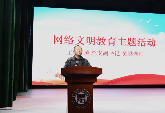 学院党总支副书记黄昊为全体新生作《网络文明主题教育》专题报告。报告围绕网络文明建设的重要意义、青年学子的使命担当等方面展开,并提出三点嘱托:一是要知行合一,筑牢网络安全责任防线;二是要夯基固本,锤炼网络防护过硬本领;三是要融合创新,开辟网络安全发展新径。报告中既有理论高度,又有实践指导,引导同学们在技术探索中坚守伦理底线,在网络空间中传递正能量,为新生们扣好专业学习的 “第一粒扣子”。