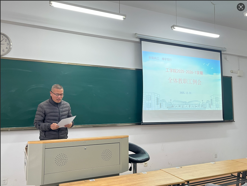 12月31日下午,工学院在1幢305教室召开2025-2026学年第一学期全体教职工会议。
